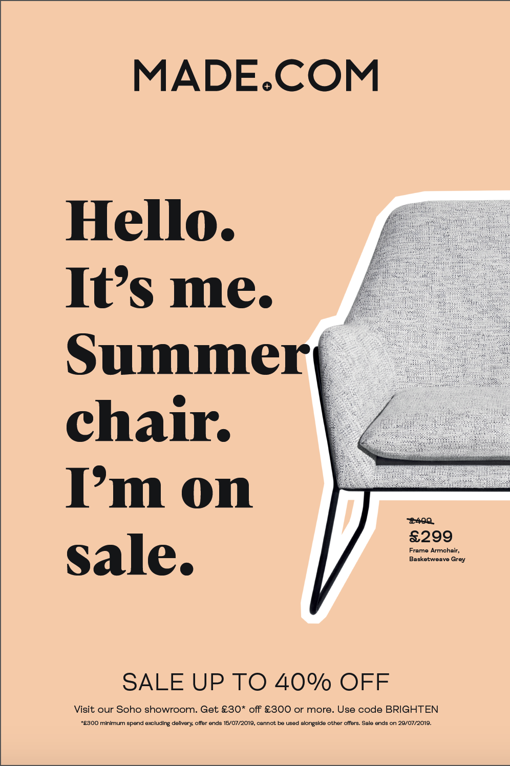 I was the Sole Creative Copywriter for the 2019 Spring/Summer/Fall print and OOH campaigns, wrote online copy and headlines, and the 2020/2021 Winter and Spring campaigns for the U.K. and Europe. I also created their trademarked strapline "Design Your Happy Place", moving away from "Different by Design".