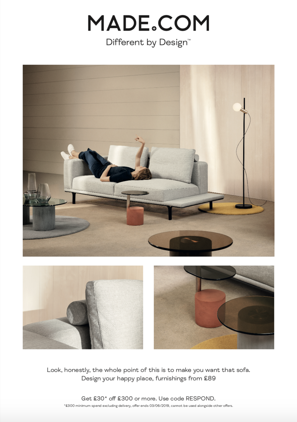 This turned into a UGC campaign, where fans were asked to post images on social media of products in their home. 160k+ images were collected (98% of which was organic), and the initial phases of the “Design your happy place” campaign were so successful that MADE was shortlisted for the Digiday Content Marketing Awards. Revenue also increased by 22% in the year.