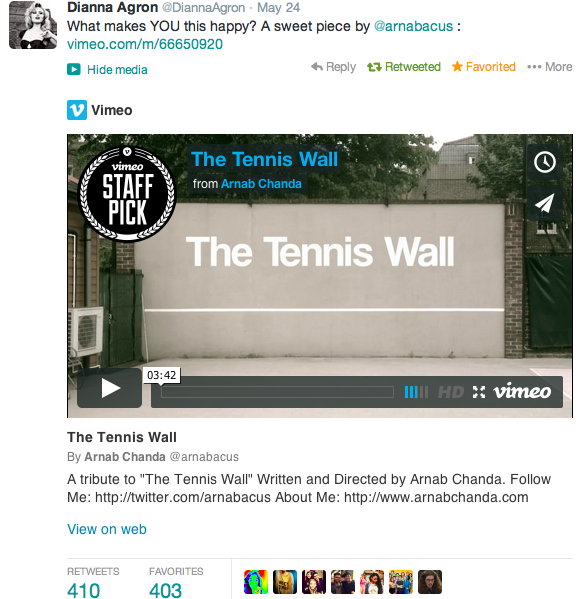 I wrote and directed a gentle no-budget lo-fi short film called "The Tennis Wall" (2013), which was a FilmShortage.com Daily Short Pick and an official Vimeo Staff Pick. I shot it on a humble iPhone 4s.